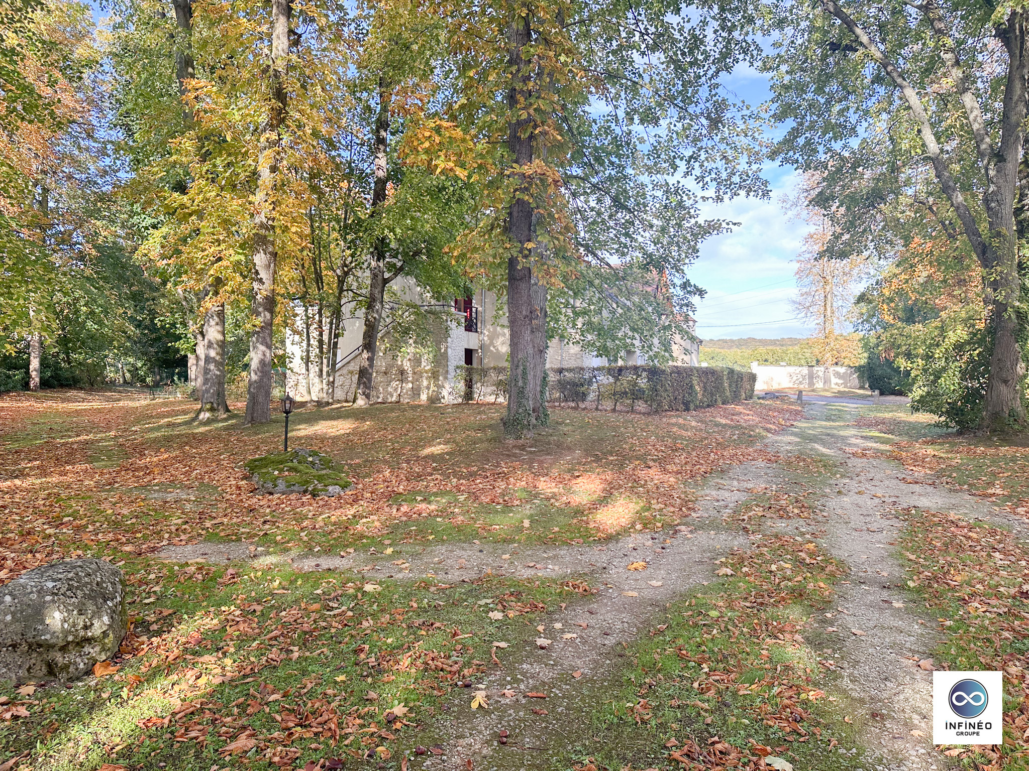 Dès l’entrée, vous serez séduits par l’environnement verdoyant, le calme absolu et la vue dégagée sur le parc arboré du château, véritable écrin de nature.